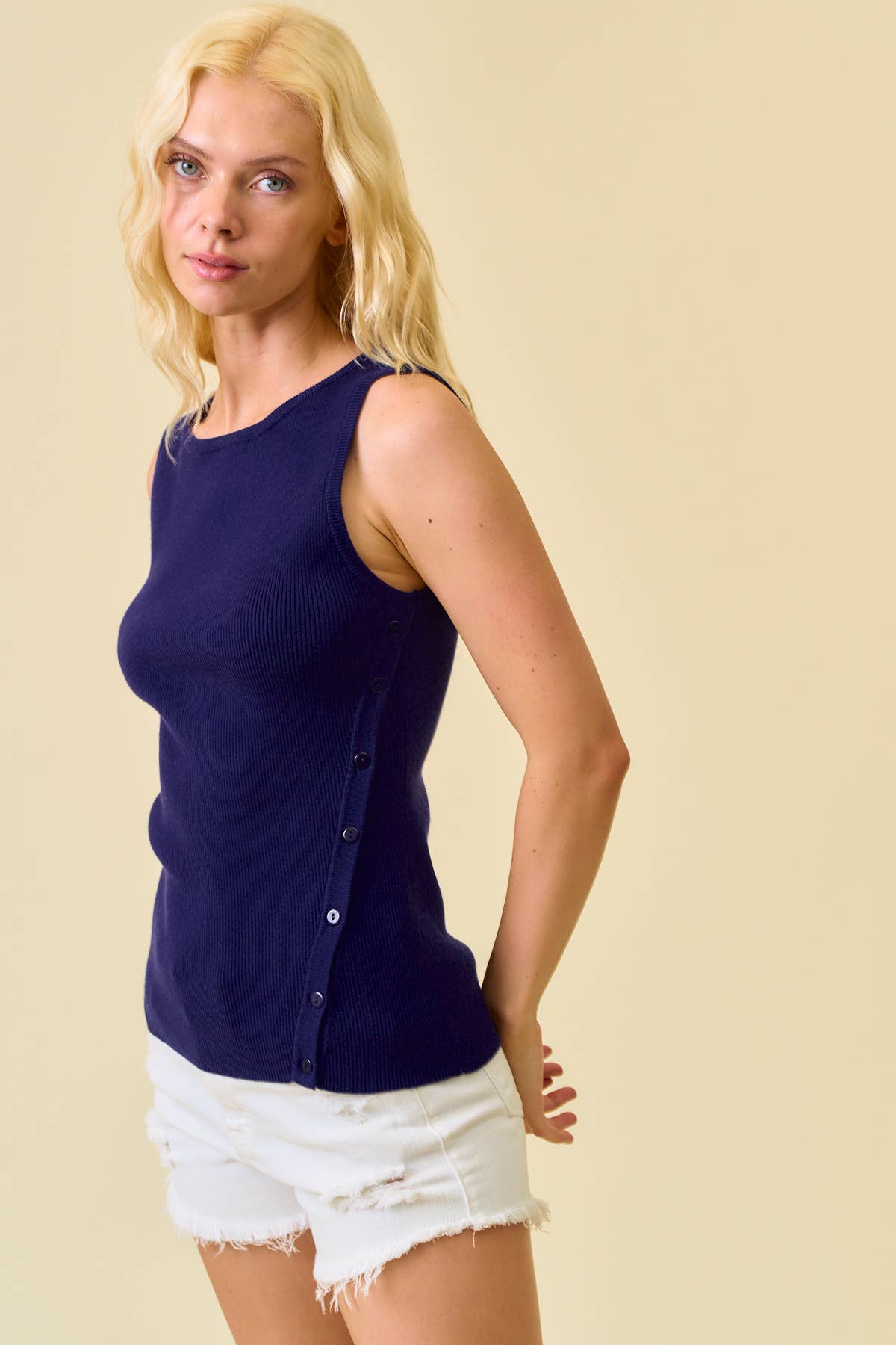 ASYMMETRICAL BUTTON SWEATER RIBBED TANK