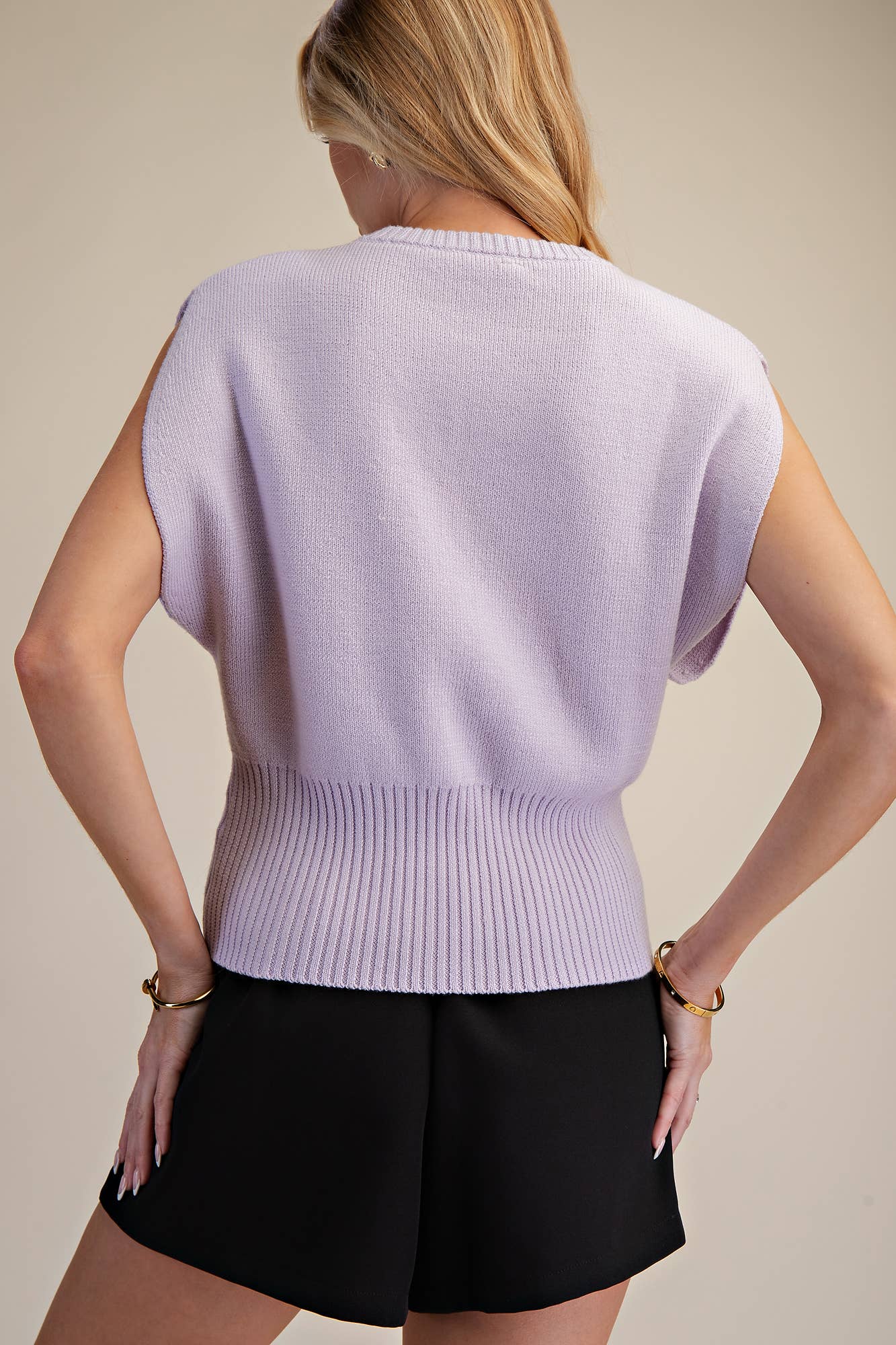 - Versatile sleeveless knit construction